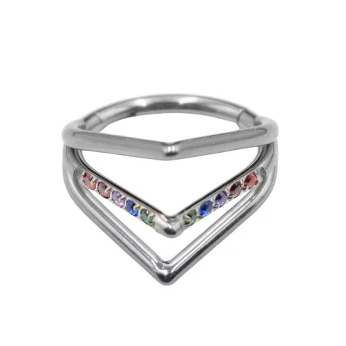 Anneau titane charnière motif 3 triangles à strass multicolor | Itc