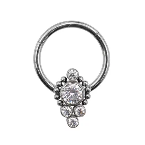 Anneau titane charnière motif ornemental à strass blanc | Itc