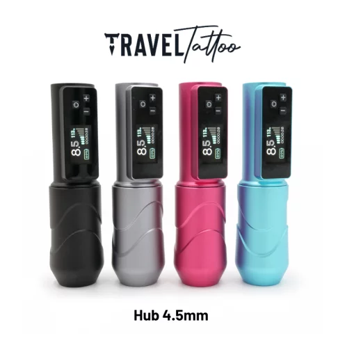 La Travel Tattoo Original avec moteur de 4.5 mm est une machine sans fil alliant puissance et polyvalence. Elle offre 10 heures d’autonomie et un écran intuitif, pour une expérience de tatouage fluide et sans contraintes.