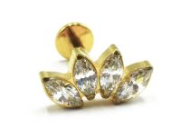 Labret Titane PVD Gold Interne Stérile motif marquise 4 Strass | Itc
