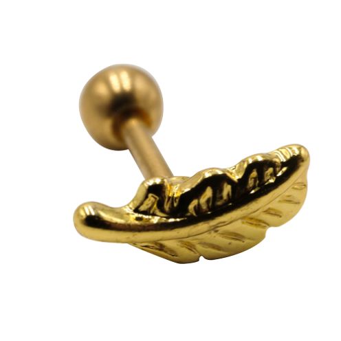Un labret doré à motif plume finement travaillé. Léger, élégant et facile à poser pour sublimer les piercings de lèvre ou d’oreille.