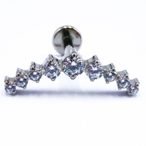 Labret Titane Interne Stérile motif Couronne de 9 Strass Blanc | Itc