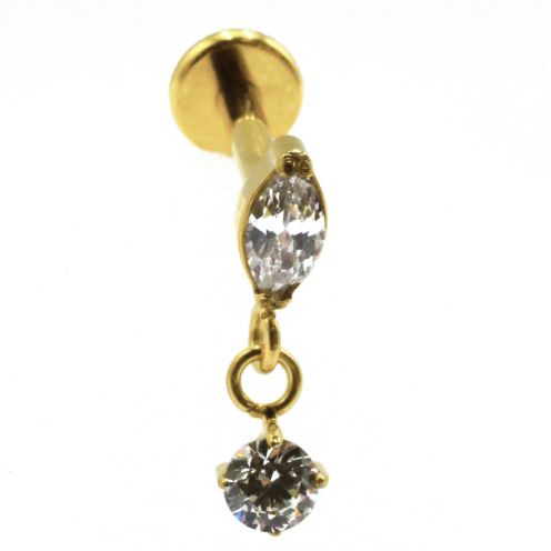 Labret Titane PVD Gold Interne Stérile motif Pendentif Rond à Strass Blanc | Itc