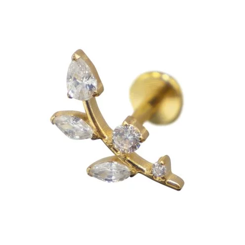 Labret Titane PVD Gold Interne Stérile motif branche rond/Ovale/Triangle BL| Itc