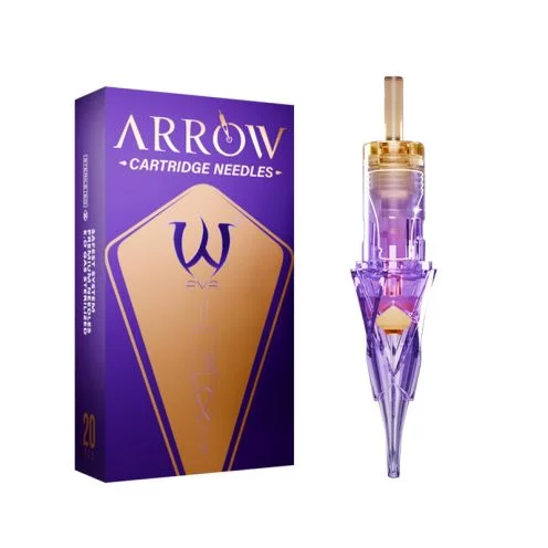 Les cartouches AVA Arrow en configuration Round Liner 0,20 mm offrent une performance remarquable pour les tatoueurs exigeant une grande précision tout en conservant une excellente régularité de ligne. Leur design unique en forme de flèche ne facilite pas seulement l’introduction de l’aiguille dans la peau : il améliore également la rétention et la circulation de l’encre tout en évitant les éclaboussures. Ce système innovant permet de tatouer avec une fluidité exemplaire et un confort optimisé. Le maintien de l’aiguille en position centrale assure une stabilité remarquable, limitant les vibrations et offrant une parfaite maîtrise de votre tracé, même dans les zones les plus délicates. Très polyvalentes, ces cartouches sont idéales pour les contours, les détails précis et les lignes fines, avec un diamètre de 0,20 mm adapté à de nombreuses techniques. Conditionnées en boîte de 20 pièces stériles, les cartouches AVA Arrow répondent aux standards les plus stricts des professionnels du tatouage, en alliant technologie, confort et fiabilité.