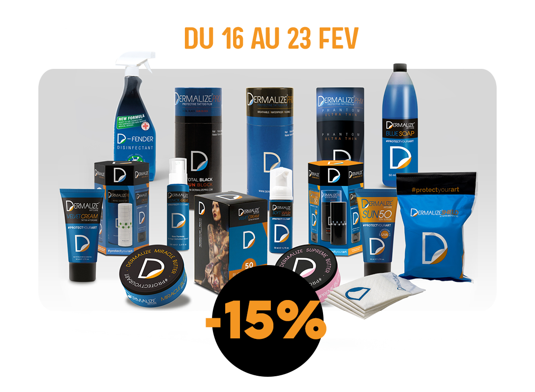 Quand il s’agit de protéger un tatouage fraîchement réalisé et d’optimiser sa cicatrisation, Dermalize s’impose comme une marque incontournable. Utilisée et recommandée par de nombreux tatoueurs professionnels, Dermalize propose des films protecteurs et soins post-tatouage conçus pour préserver les couleurs, limiter les infections et assurer un confort optimal dès les premières heures.